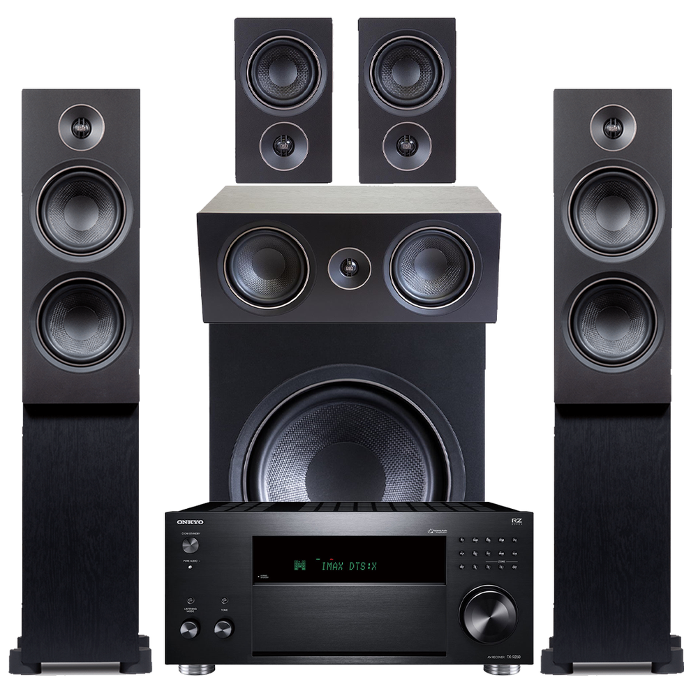 Onkyo TX-RZ50 9.2 Ch Receiver | PSB Alpha T20 Floor Standing Speakers | Alpha C10 Center Ch Speaker | Alpha P3 Bookshelf Speakers | Alpha S8 150W Compact Powered Subwoofer - Bundle