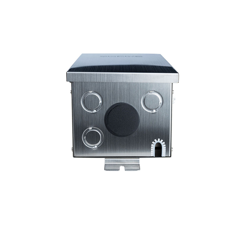 What is the material of the transformer enclosure? The transformer is housed in a durable stainless steel enclosure, ensuring long-lasting performance and weather resistance.