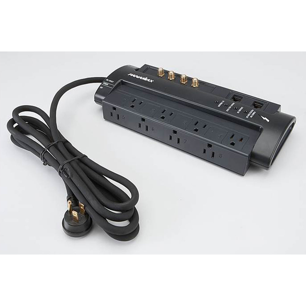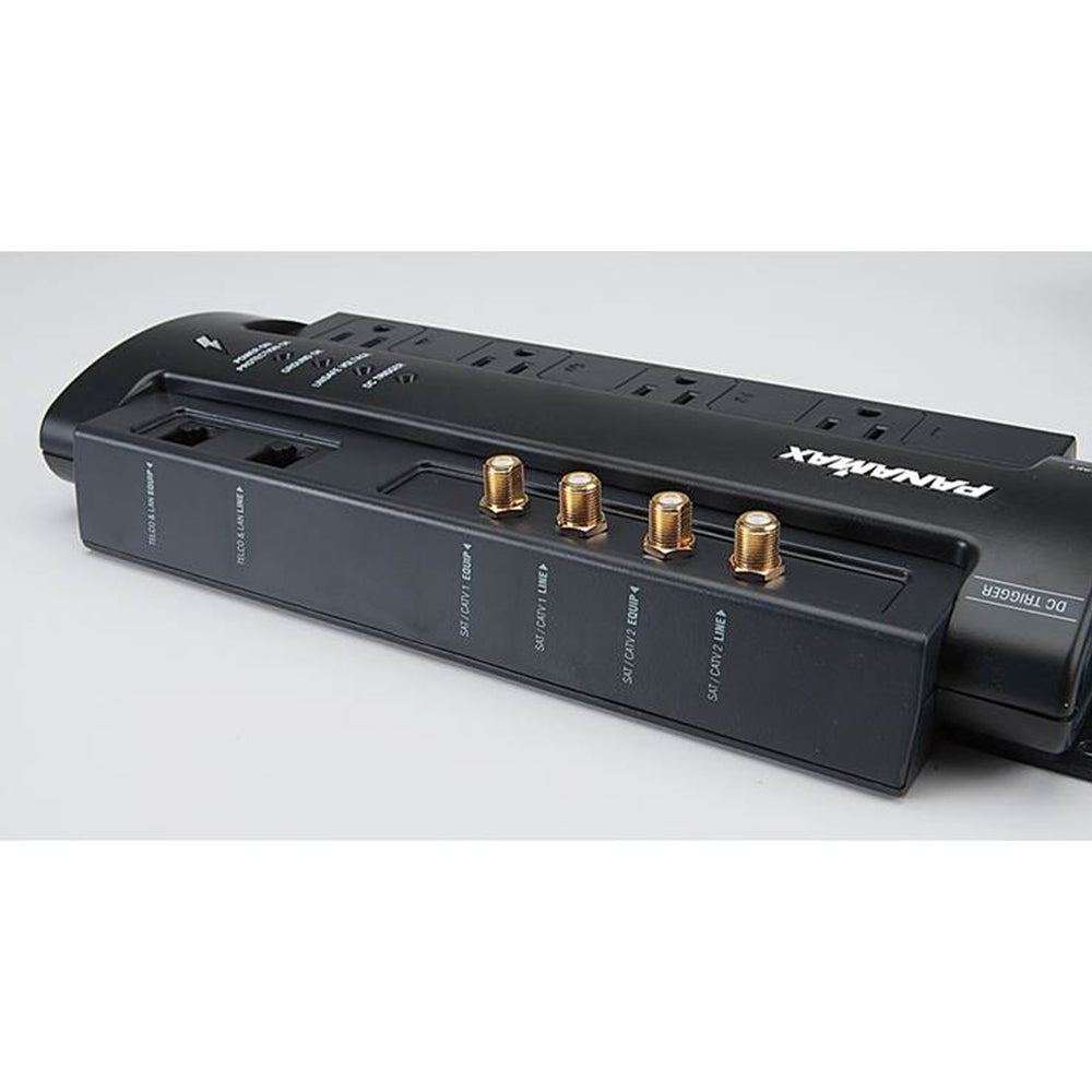 The M8-AV-PRO has eight outlets separated into two isolated filter banks to reduce the possibility of interference between components. One bank of four outlets is designed for equipment with higher current demands, such as home theater receivers and powered subwoofers. The other bank of outlets protects the rest of your gear. You also get three sets of protected coaxial input/output jacks for your cable TV and antenna feeds, plus one input/output for your telephone or Ethernet connection. The M8-AV-PRO's versatile design lets you protect even more components by adding optional Panamax modules.M8-AV-PRO Features :