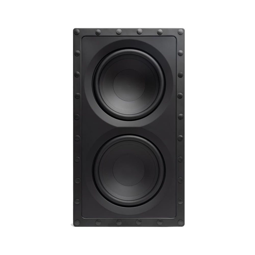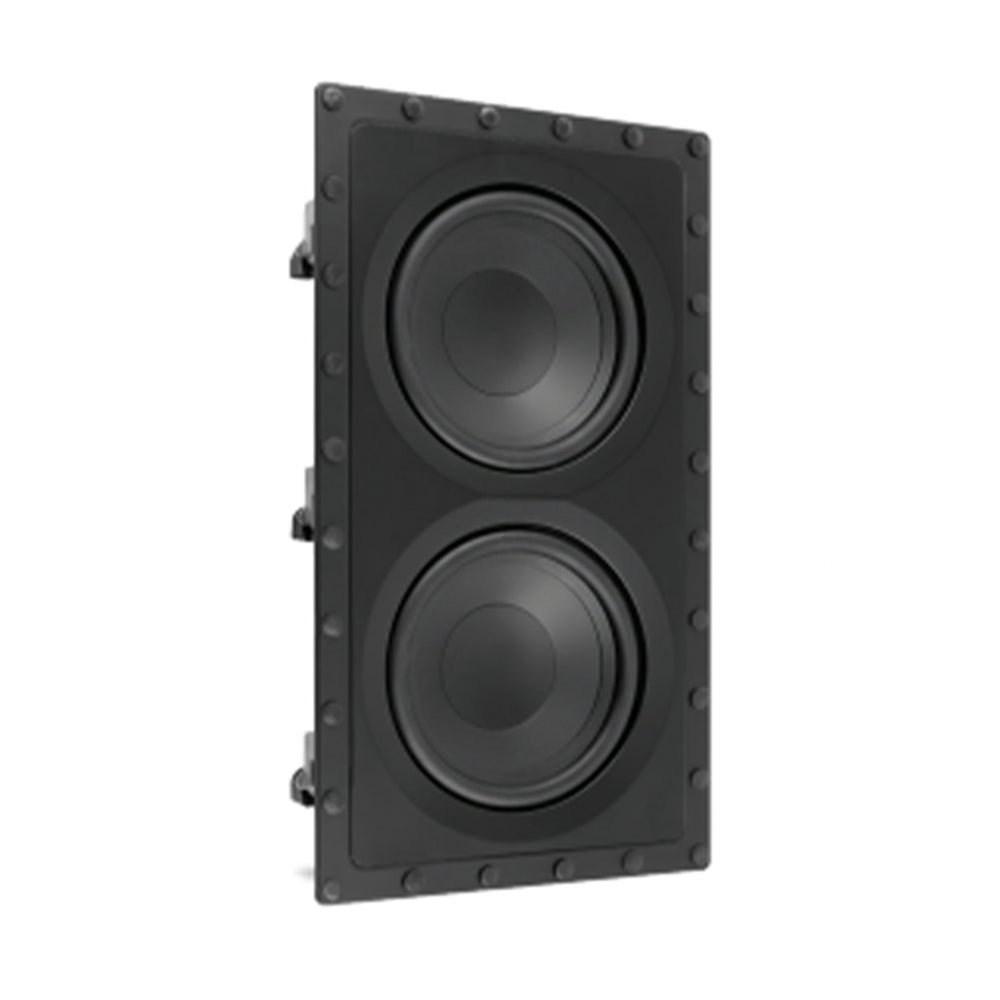 Purpose-built for high output from a compact enclosure, with highefficiency and low distortion. The dual, 8” High-Excursion CarbonFiber-Reinforced Polypropylene woofers have a larger surface area than a 10” sub for powerful, accurate bass. The optional enclosure ensures consistent performance in any application while reducing sound transmission to other areas of the home.