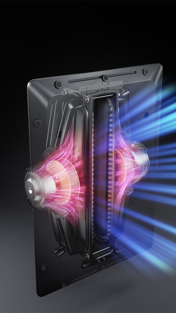 Our dual proprietary 3.75” x 15.35” (95mm x 390mm) Carbon-X cones are highly damped and tremendously rigid. They provide tight, well-defined low-frequency response with a weight and authority that highlight the most challenging music and movie soundtracks. To take things even further, Paradigm engineers deployed our patented over-molded Active Ridge Technology (ART) to produce truly exceptional peak-to-peak cone movement, delivering higher output and lower distortion to ensure every bass note sounds distinct and is delivered with authority.