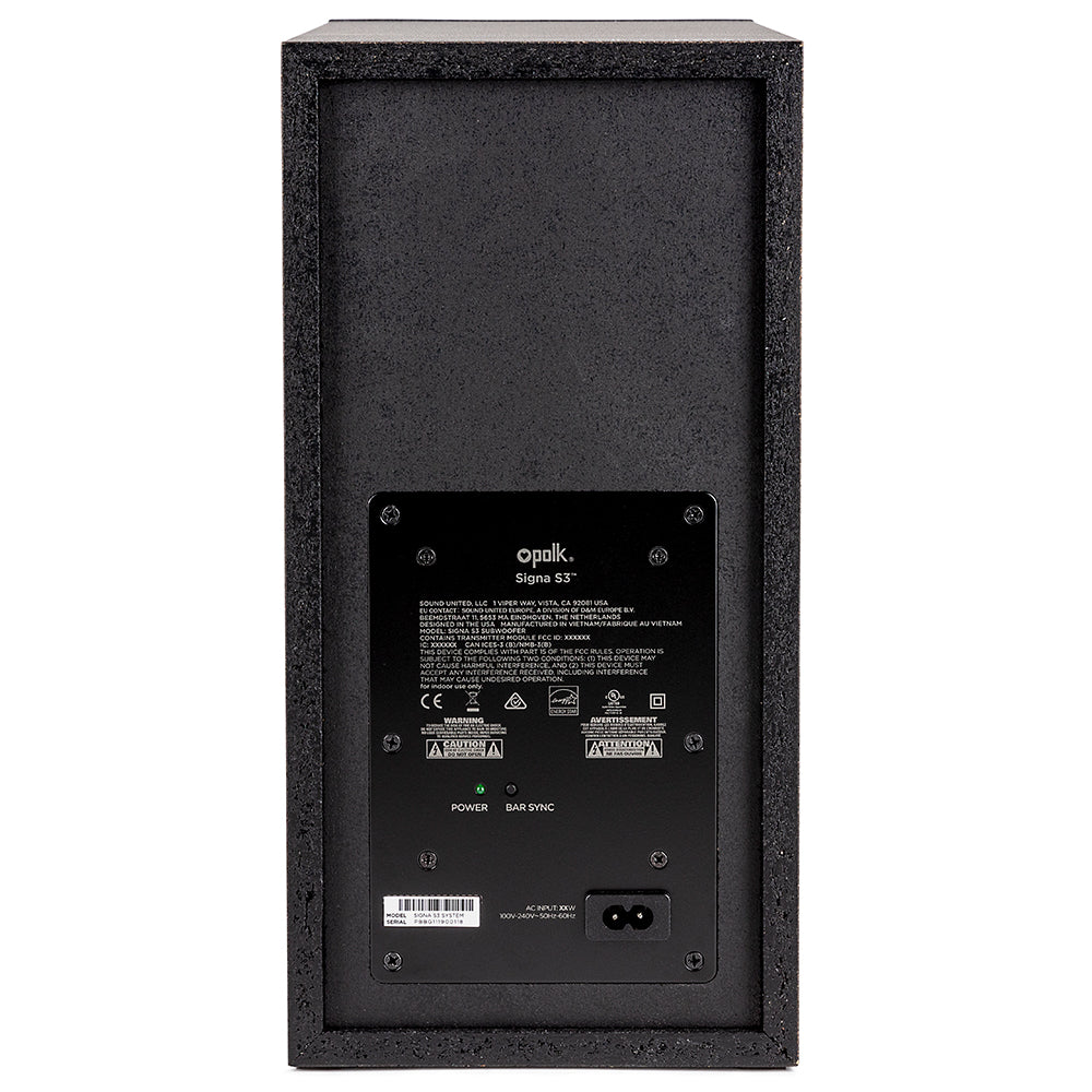 Paired with the Polk Audio Signa S3 sound bar, the included wireless subwoofer reproduces deep bass impact you can feel for all your home theater and music needs.