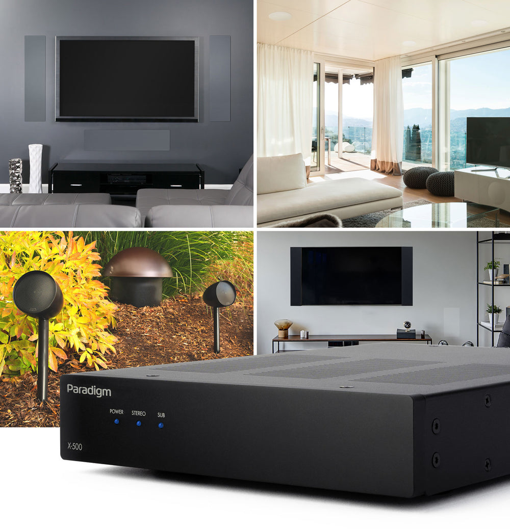 The All-New Two-Channel Paradigm X-500 amplifier is the perfect complement to Paradigm's Home, Pro and Elite in-wall and in-ceiling speakers, the Defiance Custom Subwoofers and their Stylus, Rock and Garden Oasis outdoor solutions. Configurable as either a two-channel Stereo, dual Mono, or as a bridged single-channel Mono amplifier, the X-500's slim form-factor, flexible inputs and selectable DSP presents make installation and setup a breeze.