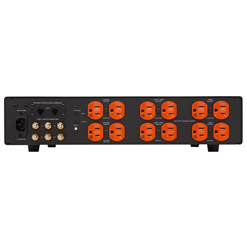 The Elite-15 PFi's wide-bandwidth noise filtration reduces the AC line noise that can mask low-level audio and video details. The result is noticeably improved picture and sound quality. Twelve AC outlets on the back panel are divided into three isolated banks, which helps prevent noise created by one component from affecting the power going to your other plugged-in equipment. These outlets have hospital-grade connectors that grip your gear's AC plugs snugly and securely.