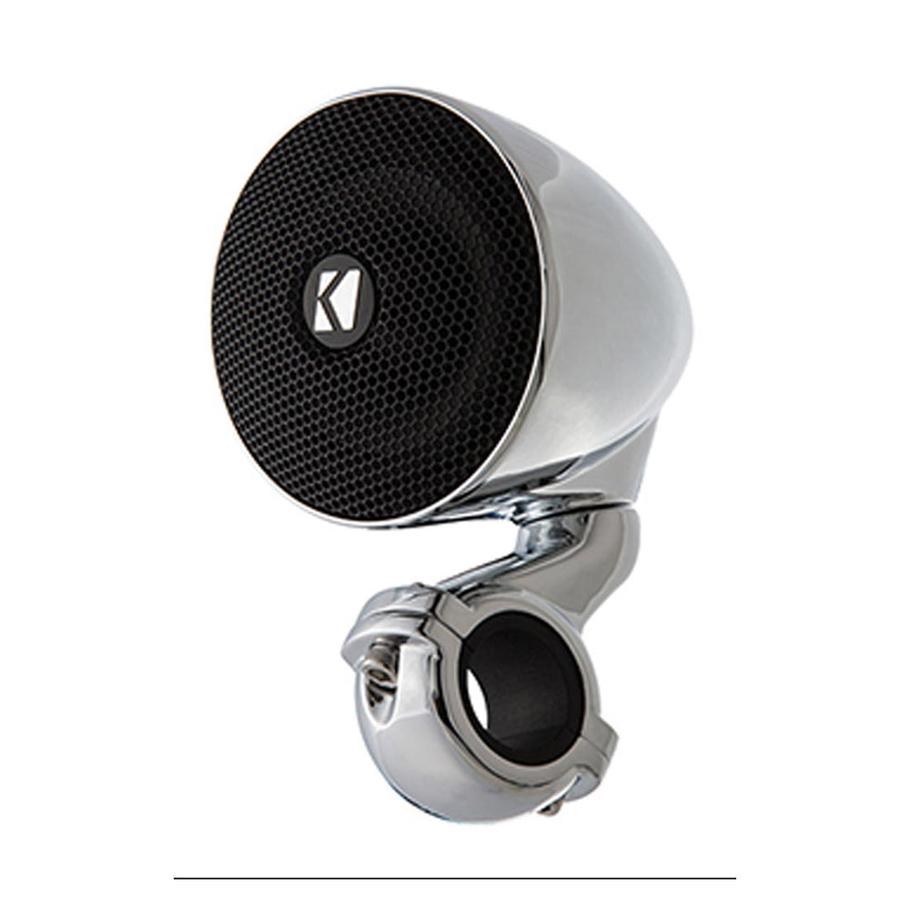 With the Kicker PSM Series enclosed speakers, style meets substance. These chrome-plated beauties are designed with an adjustable, clamp-style mounting system that fits seamlessly onto handlebars of various sizes. Whether you're rolling with 7/8", 1", or 1-1/4" handlebars, these speakers have you covered. The weather-resistant design ensures that your music keeps playing no matter what Mother Nature has in store.