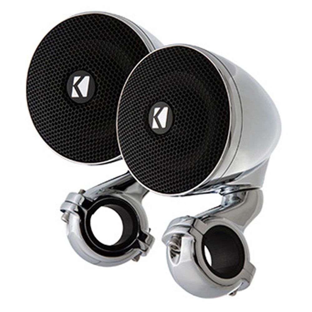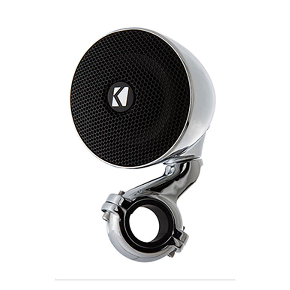 The Kicker PSM Series enclosed speakers strike the perfect balance between style and functionality. Their adjustable, clamp-style mounting system fits seamlessly onto handlebars of various sizes – whether it's 7/8", 1", or 1-1/4", these speakers are up for the task. The weather-resistant design guarantees that your music keeps playing, even when the weather takes a turn.