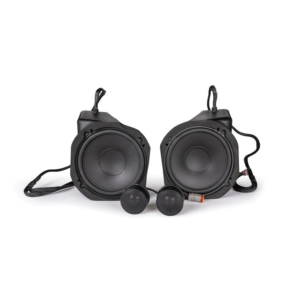 Rear Sound: Don’t forget the rear! The MUD65PL speaker cans provide rear sound with style and performance. Compact and weather-resistant, these speakers also feature RGB lighting, making them not only functional but also visually appealing.