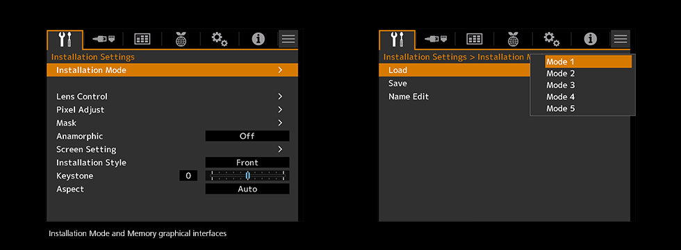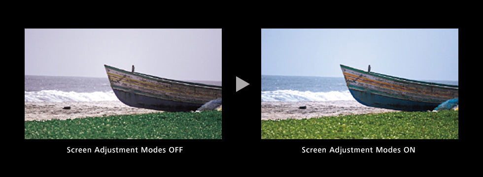 Screen Adjustment Mode is one of the nine Installation Modes described above. When the user selects a setting that best suits the screen being used from the Screen Adjustment Mode settings, the projector adjusts the image with natural color balance to match the screen. The mode is compatible with the latest models offered by the world's major screen manufacturers.