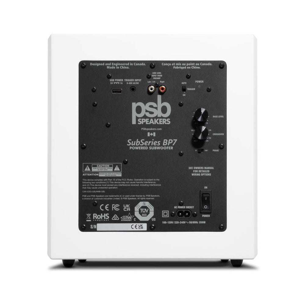 The PSB SubSeries BP7 powered subwoofer brings deep, musical bass to any room while blending effortlessly into music and home theatre systems. Its compact design suits smaller spaces without giving up clean, controlled low end.