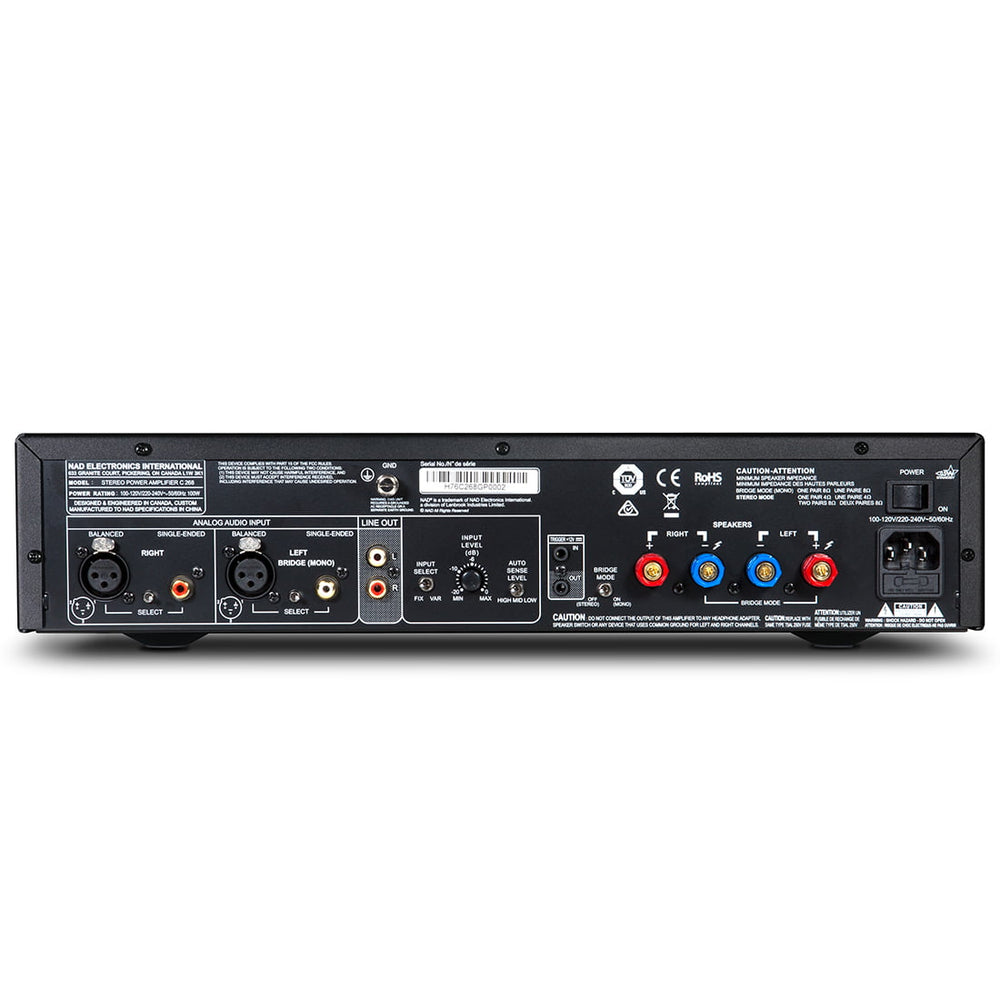 You can also pair the C 268 with the NAD C 368 Hybrid Digital DAC Amplifier, and with both units bridged for mono, 300 watts per channel of distortion-free sound become available for your listening pleasure. The NAD C 268’s auto-sense feature with selectable threshold is perfect for automating complex systems or for hiding the amp out of sight in a cabinet. Included with the C 268 is a ground lug that is very useful for eliminating ground loops and noise in complex multi-unit systems.