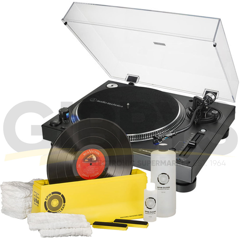 Audio-Technica AT-LP140XP-BK Direct Drive Professional DJ Turntable - Black | Spin-Clean SPINSYS2 Record Washer MKII (Deluxe Kit)