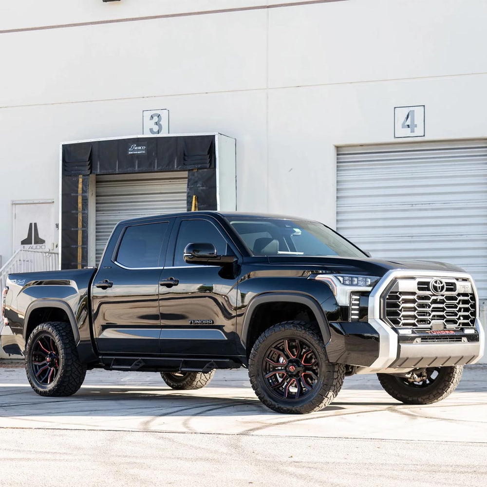 Installing the Stealthbox is hassle-free, fitting neatly into the storage tray beneath the driver's side rear seat. Included with the Stealthbox is a sleek black steel mesh grille, adding a touch of sophistication while protecting the subwoofer. It's important to note that while it fits most 2022-Up Toyota Tundra CrewMax models, it is not compatible with hybrid engine variants.