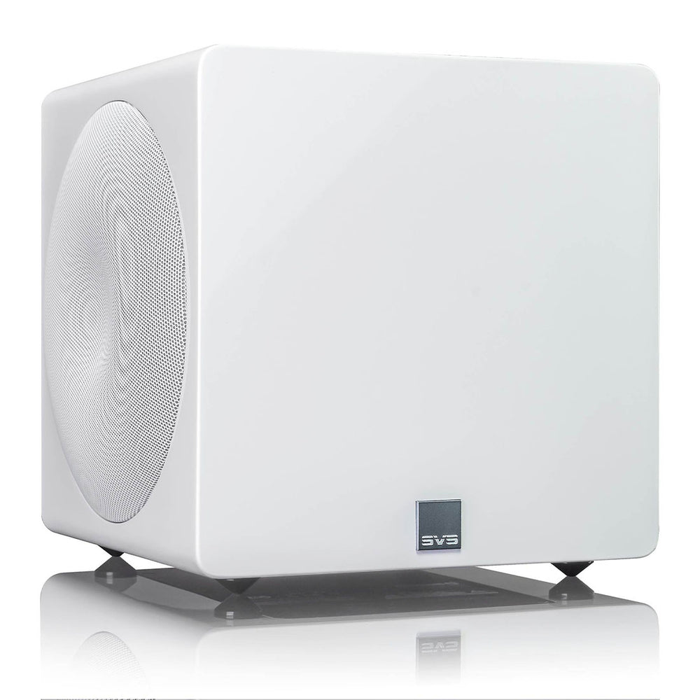 The SVS 3000 Micro Ultra-Compact Powered Subwoofer in Piano Gloss White is a true powerhouse in a small package. It features dual-opposing long-stroke 8-inch drivers that work in perfect unison to produce stunningly deep and musical bass. The STA-800D2 Sledge amplifier is capable of delivering 800 watts of RMS power and over 2,500 watts peak power to ensure accurate and controlled bass at any volume. The piano gloss white finish and dual protective, non-resonant steel mesh grilles give the subwoofer a sleek and stylish look that blends seamlessly into any home theatre or Hi-Fi setup. The rigid and braced MDF cabinet provides a resonance-free environment that remains motionless even at peak playback levels. With a frequency response of 23-240Hz +/- 3 dB and compact dimensions of 10.9” H X 11.7” W X 10.7” D, the SVS 3000 Micro Ultra-Compact Powered Subwoofer is a perfect choice for those who demand uncompromised subwoofer performance in a small form factor.