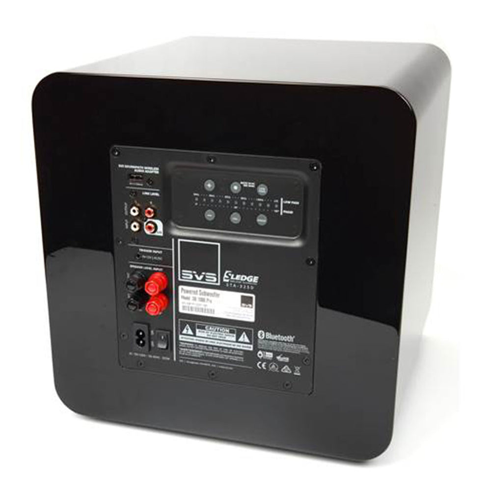 The SB-1000 Pro uses reference amplifier technology from the top SVS 16-Ultra Series, with a 325 watts RMS, 820+ watts peak power Sledge STA-325D amplifier with completely discrete MOSFET output. Harnessing the immense power while ensuring tonal accuracy and driver control for more convincing bass effects is a 50 MHz Analog Devices Audio DSP with frequency response precisely tuned for the SB-1000 Pro.