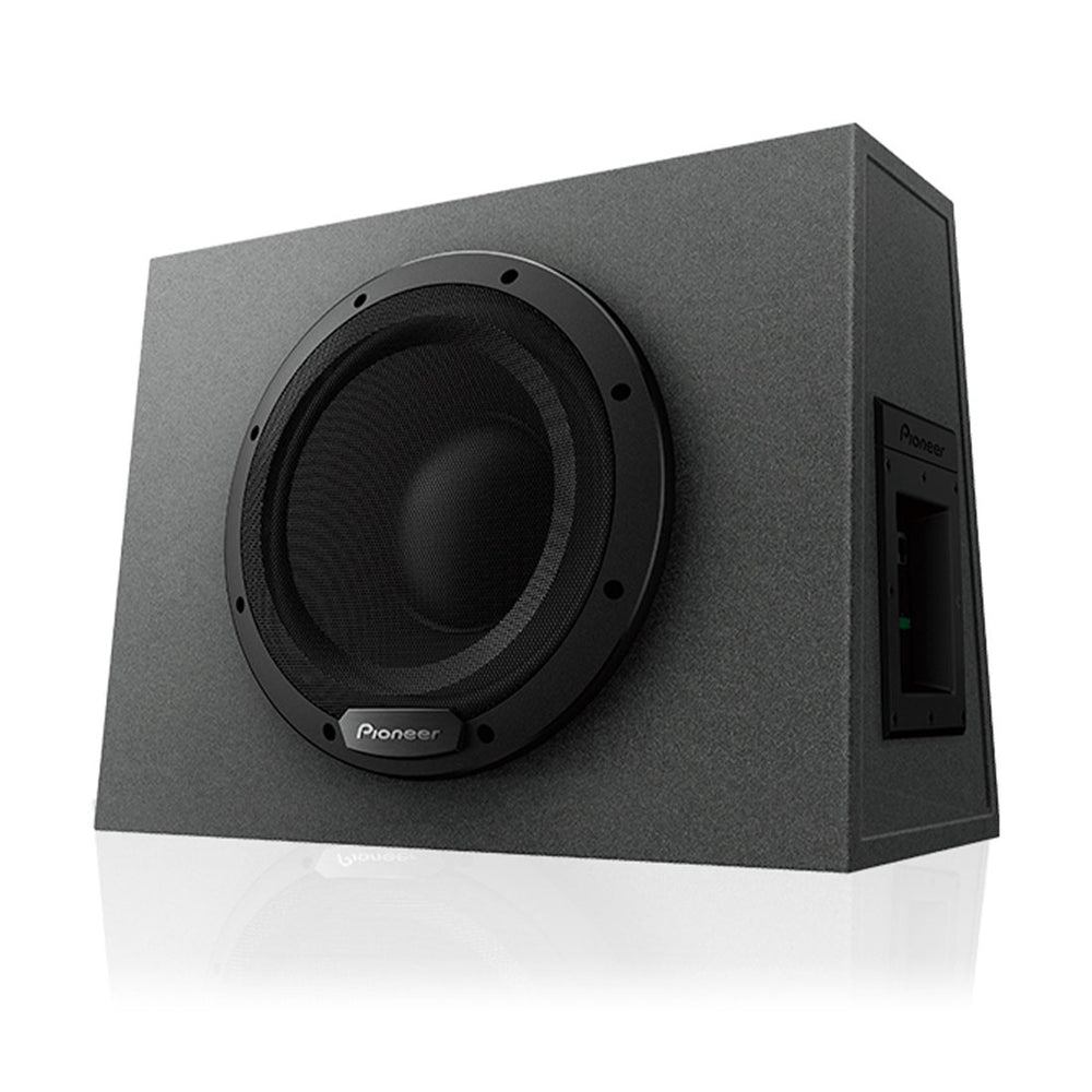 The Pioneer TS-WX1010A, Built with high bandwidth, high output and low distortion 300-watt Class D amplifier mated to high sensitivity woofers specifically optimized for use in small, sealed enclosures.
