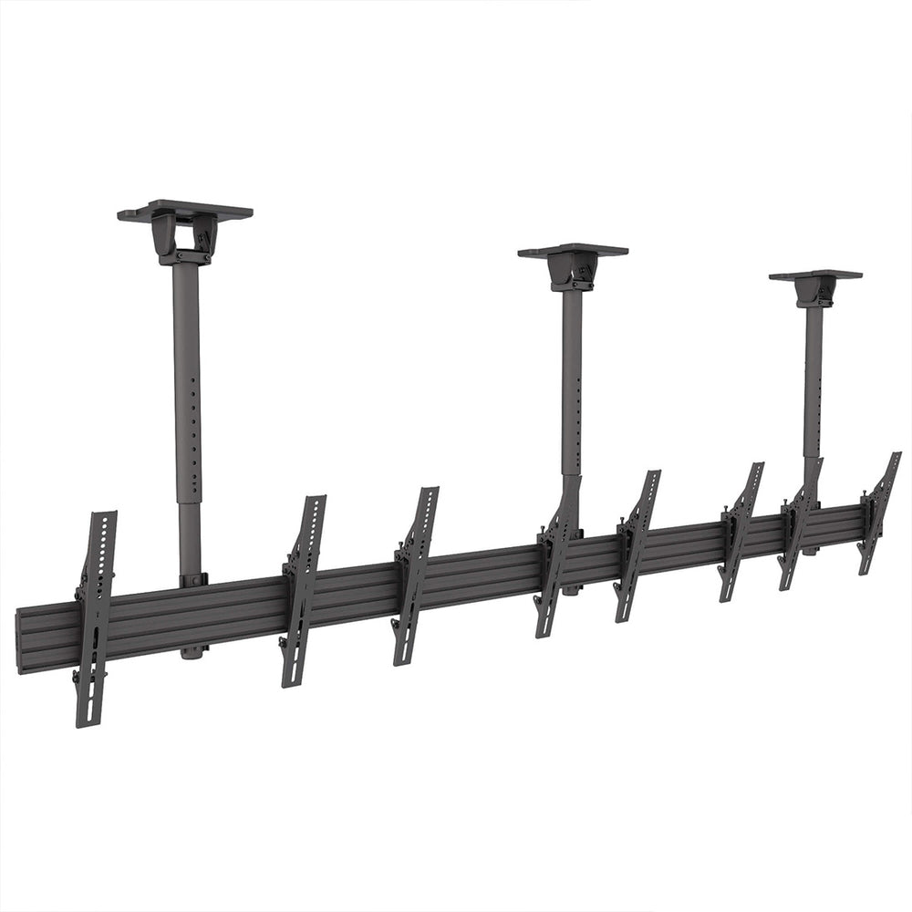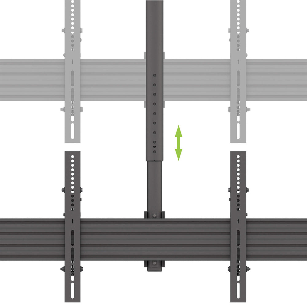 Available in three models, MB ceiling mounts support two to four screens weighing up to 66 pounds each. Their modular design allows for additional extrusions to be added to accommodate TVs with wider VESA patterns, or to connect multiple units together.