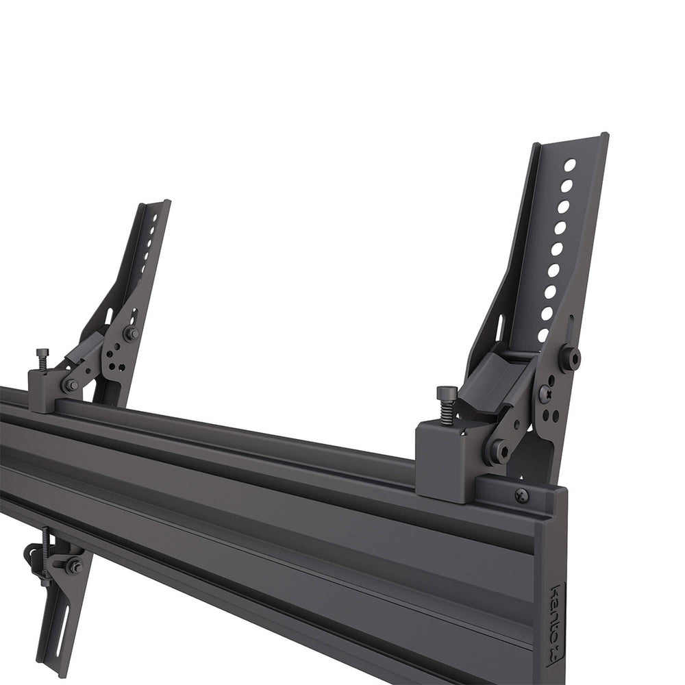 The Kanto MBC411T MB Series telescoping ceiling mount system, designed for commercial applications with limited wall space, provides a versatile solution for displaying menu boards and other digital signage. The modular rails of the MBC411T Menu Board Ceiling Mount System allow four screens to be placed next to one another in portrait or landscape orientation, while precision levelling screws ensure perfect alignment. With simple height adjustments and four distinct tilt settings, you can achieve proper line-of-sight. This all-in-one mounting solution comes with everything you need for wood and concrete installations and can swing up to 90 degrees to accommodate sloped ceilings and support beams.