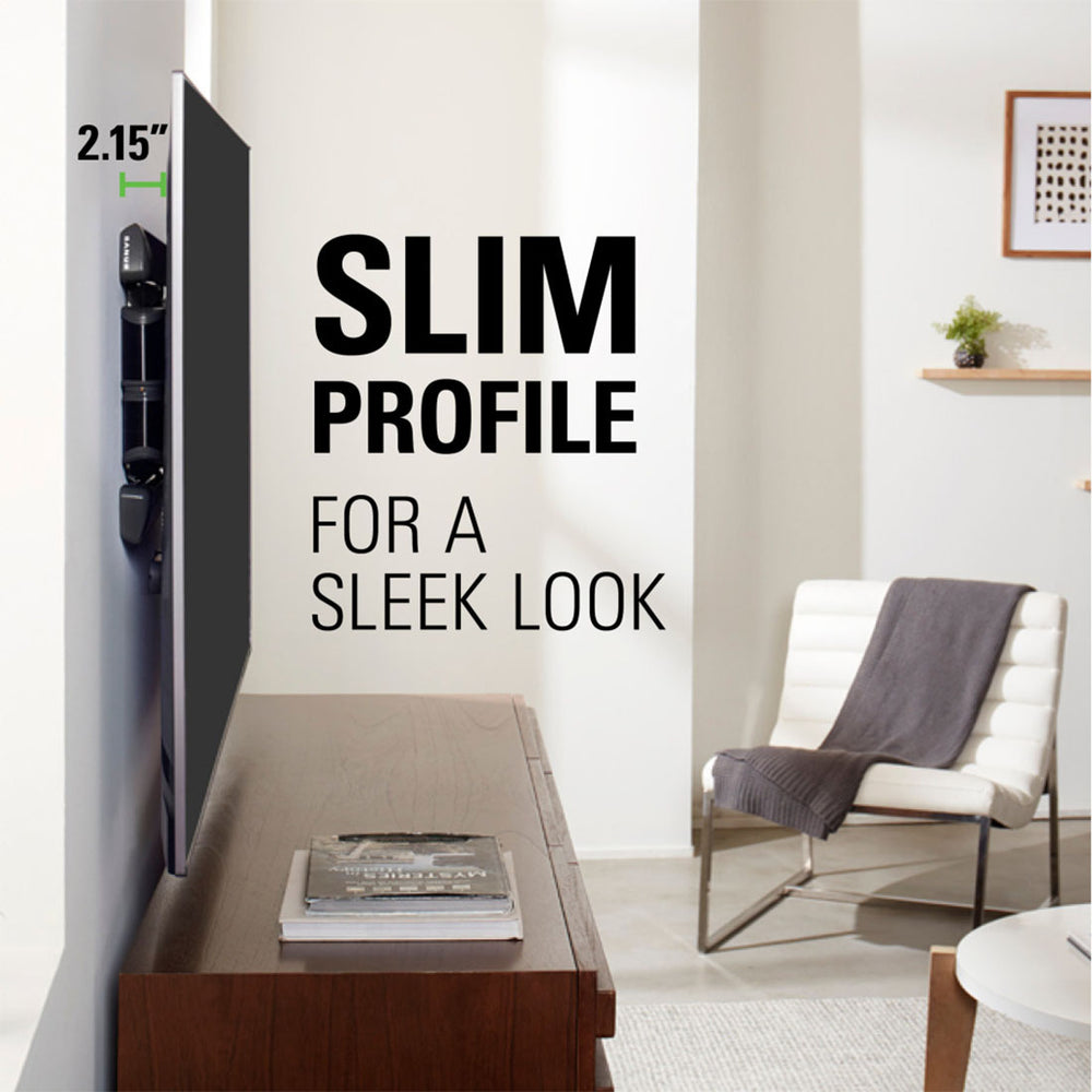 Unlike traditional full-motion mounts, the Sanus VLF728-B2 allows TVs to sit just 2.15 inches from the wall, creating a sleek, streamlined appearance. When extended, it provides up to 28 inches of reach, offering maximum versatility.
