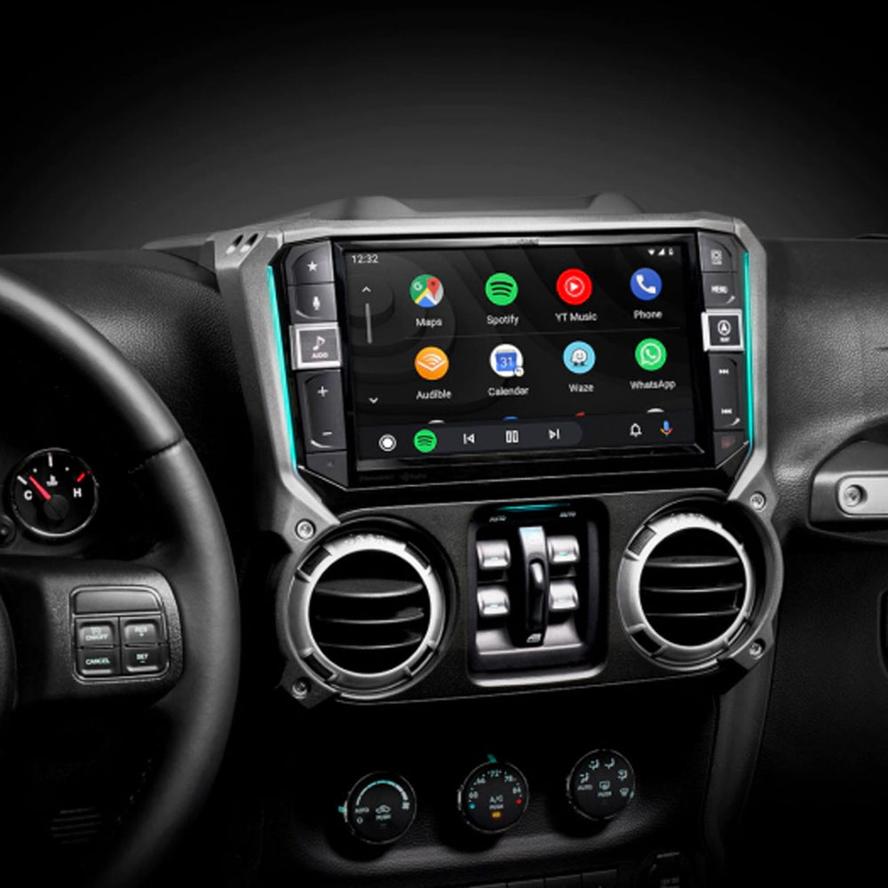 The Alpine i509-WRA-JK digital multimedia receiver upgrades your 2011-18 Jeep Wrangler JK with high-quality audio and modern features. This rugged system includes a 9" high-resolution display, seamless Apple CarPlay and Android Auto connectivity (both wired and wireless), and Bluetooth streaming. It fits easily with a custom dash kit and keeps your Jeep’s factory controls and features. Enjoy dual USB and HDMI inputs, HD Radio, and SiriusXM compatibility. The i509-WRA-JK also supports rear-view cameras and includes iDatalink Maestro for extended vehicle info and controls. Its durable design is splash-proof and dust-proof for off-road adventures