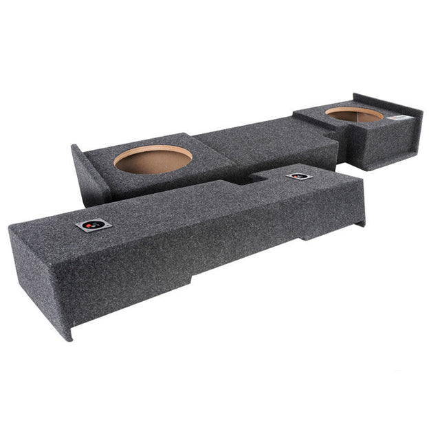 The pinnacle of precise engineering and exceptional craftsmanship is the Atrend A302-12CP Dual 12" Sealed Carpeted Subwoofer Enclosure. This customized subwoofer enclosure is expertly made using premium materials and cutting-edge techniques, making it a trustworthy option for consumers who demand perfection from their audio systems. This enclosure, built from sturdy hardwood MDF with accurate mitered corners and full inset dados, is proof of Atrend's unwavering dedication to quality. Atrend's reputation for excellence extends from the initial design stages to the final product delivery. Every step of the process is infused with a dedication to uncompromising sound quality and precision engineering. Utilizing cutting-edge computer automated software and state-of-the-art machinery, Atrend remains at the forefront of innovation within the market. Their emphasis on efficiency and rigorous testing ensures that each product bearing the Atrend name is built to exceed expectations. One of the standout features of Atrend's product line is the vehicle-specific enclosures, like the A302-12CP. These enclosures are thoughtfully designed to seamlessly integrate into specific vehicle applications, optimizing subwoofer space while maintaining a discreet presence within the vehicle. With its intelligently designed dimensions, box volume, and shape, this enclosure offers the perfect housing for your subwoofer, ensuring an optimal audio experience. Elevate your audio journey with the Atrend A302-12CP Dual 12" Sealed Carpeted Subwoofer Enclosure – a harmonious blend of innovative design, impeccable engineering, and uncompromising sound quality. Whether you're cruising down the highway or enjoying your favorite tunes while parked, this enclosure stands as a testament to Atrend's pursuit of audio perfection.
