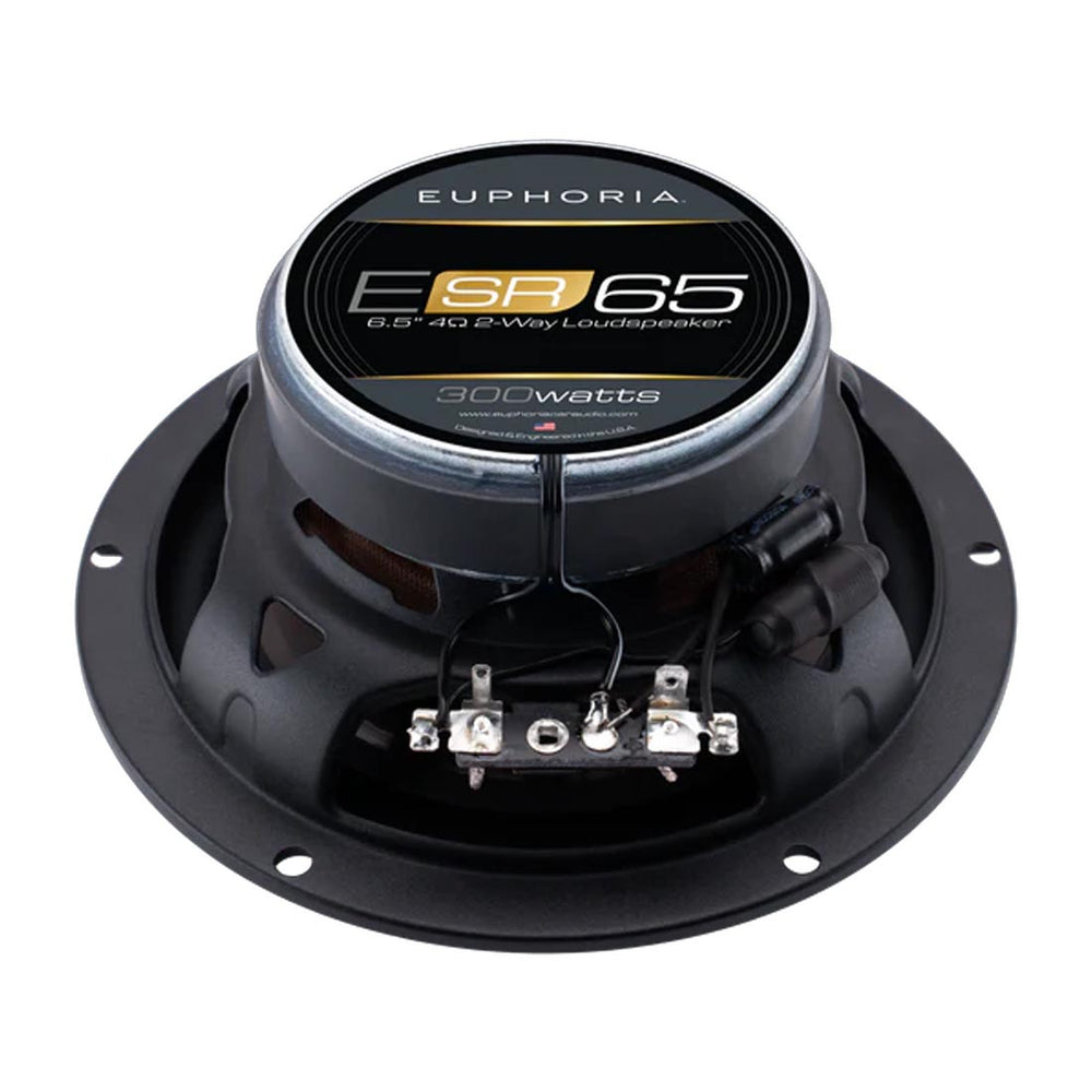 Each pair of Euphoria ESR65 speakers includes protective grills for added safety. The speakers are sold in pairs and feature a 4-ohm impedance, making them suitable for a wide range of audio setups.