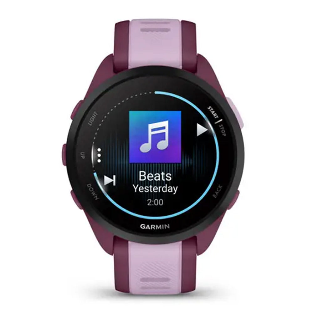 The Garmin Forerunner 165 Music features a vibrant 1.2-inch AMOLED display. This bright, colorful screen ensures that all your important metrics are easily readable, even in direct sunlight. It's like having a mini dashboard on your wrist, providing clear visibility of your performance data.