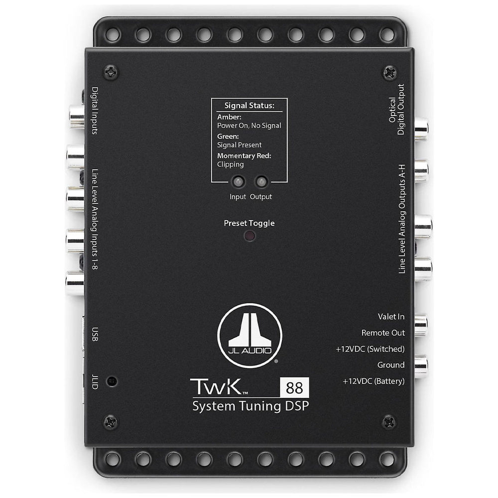 Transform your car's audio system with the JL Audio TwK-88, a cutting-edge digital signal processor that provides unparalleled system tuning for a customized listening experience. Featuring a versatile design with multiple input options and advanced DSP capabilities, including 80 bands of equalization, this processor is ideal for anyone looking to optimize sound quality and make precise audio adjustments on-the-go.