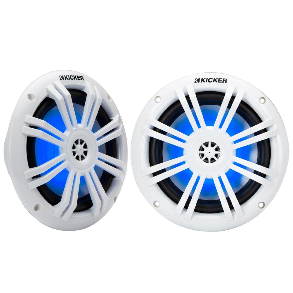 Kicker 51KM604WL 6.5" 4-Ohm Marine Coaxial Speakers with RGB LED Lighting - White