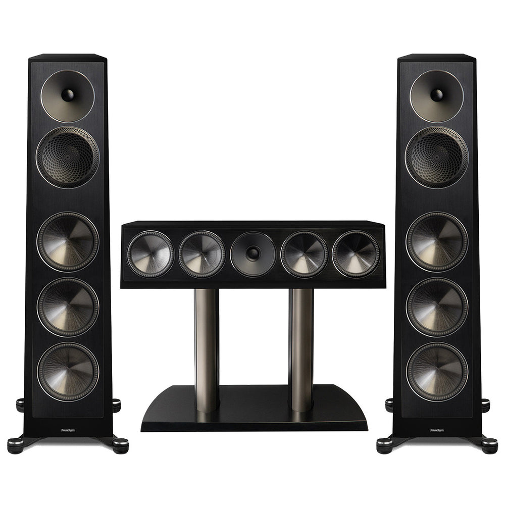 Paradigm Founder 100F Floor Standing Speaker - Pair | Founder 90C Center Channel Speaker - Gloss Black - Bundle