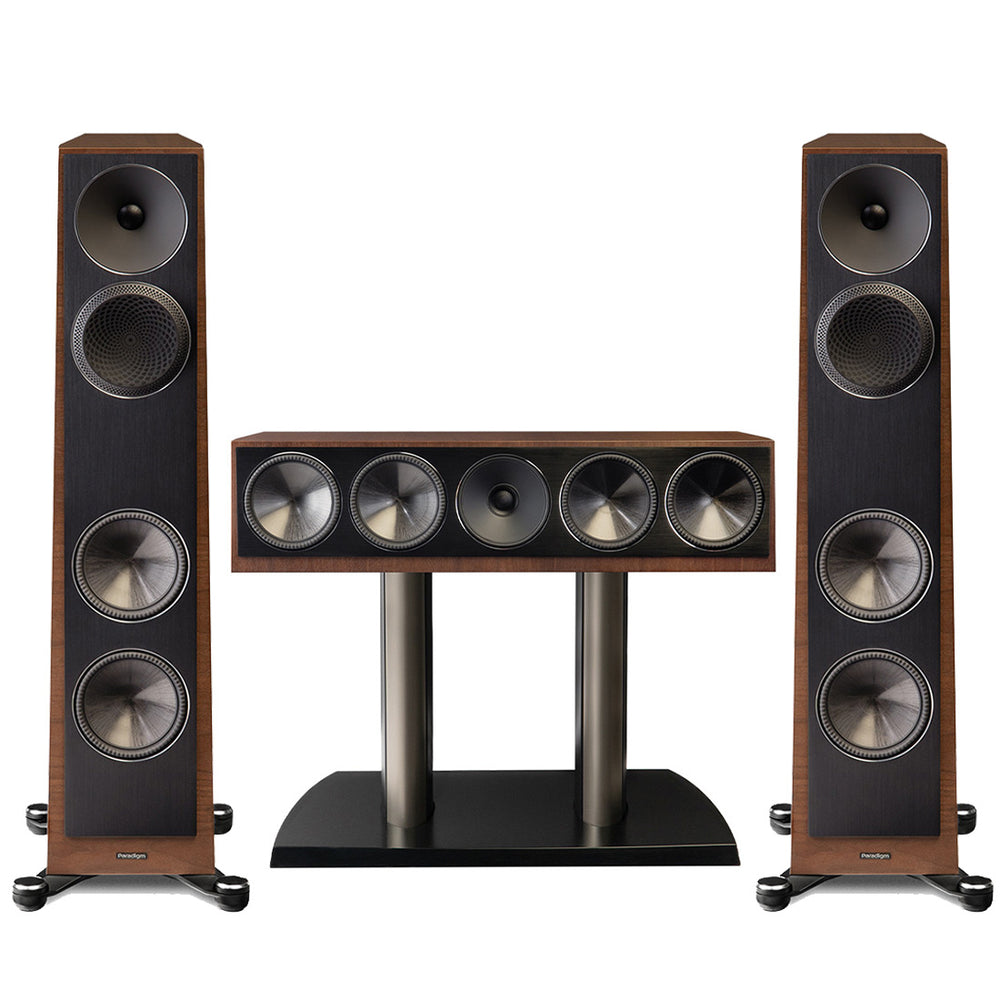 Paradigm Founder 80F Floor Standing Speaker - Pair | Founder 90C Center Channel Speaker - Walnut - Bundle