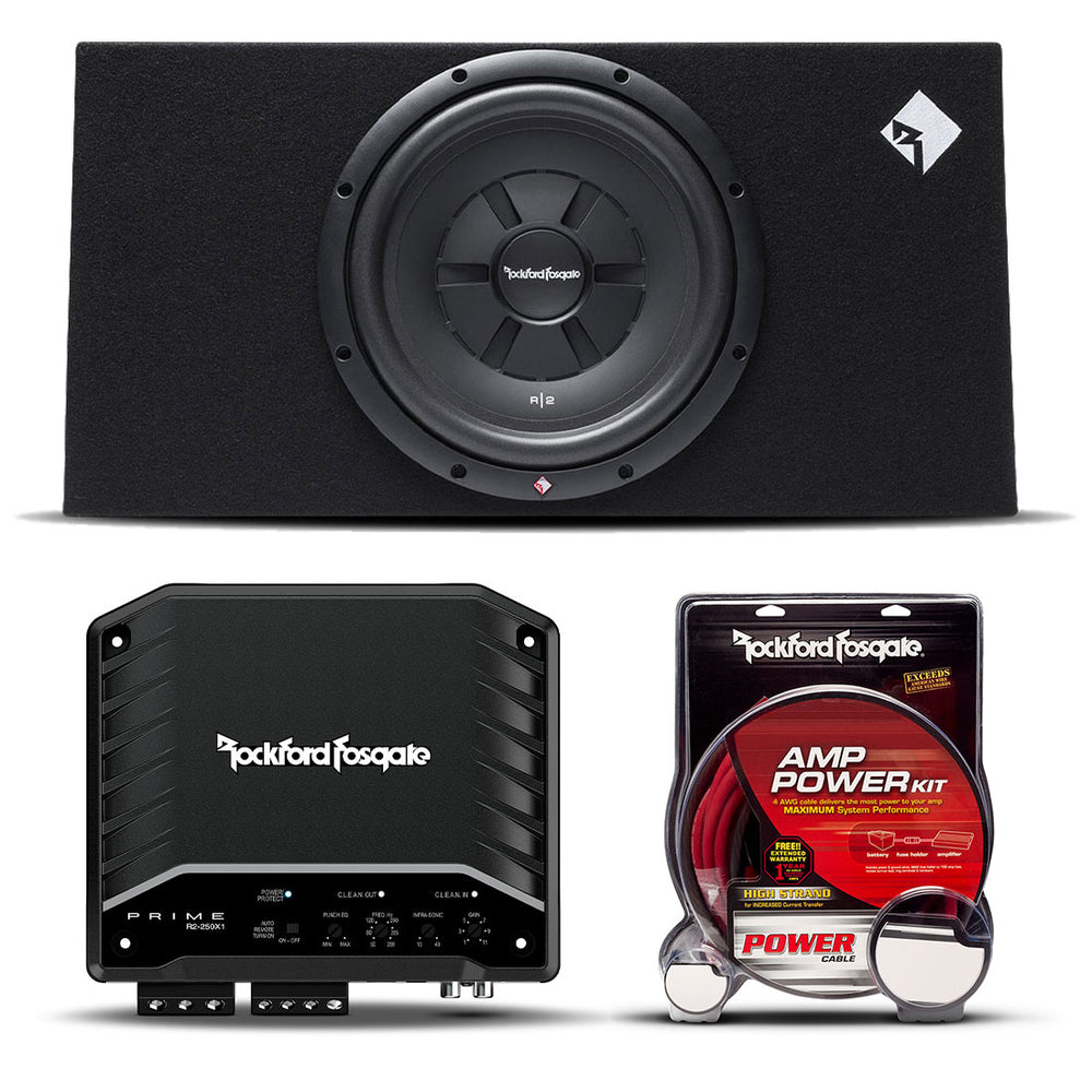 Rockford Fosgate R2S-1X12-BUNDLE 12" Shallow Loaded Subwoofer Enclosure | R2-250X1 Mono Amplifier | RFK8I Installation Kit