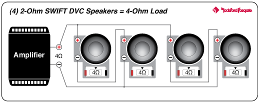 Rockford's proprietary SWIFT Terminal (Selectable Woofer Impedance Fused Termination) offers a simple and convenient method of setting the impedance presented by the dual voice coil subwoofer. The impedance jumper also provides fused protection from severe overload conditions. With the jumper in the 2? position the voice coils are wired in parallel; with the jumper in the 8? position the voice coils are wired in series.