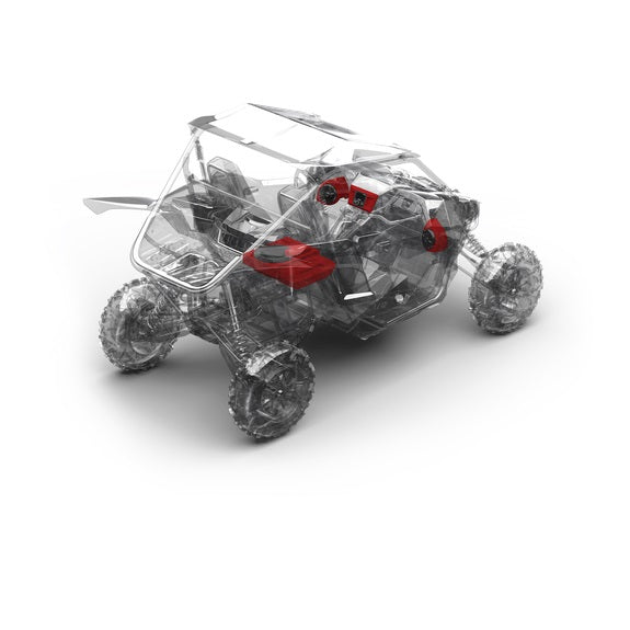 Building on the Stage 2 kit, we add in our full amplifier mounting and installation kit. This literally amps up your sound with the addition of a Power series small chassis amplifier as well as our under seat mounted woofer enclosure. If you’re ready for big bass while running the trails, then this is for you.