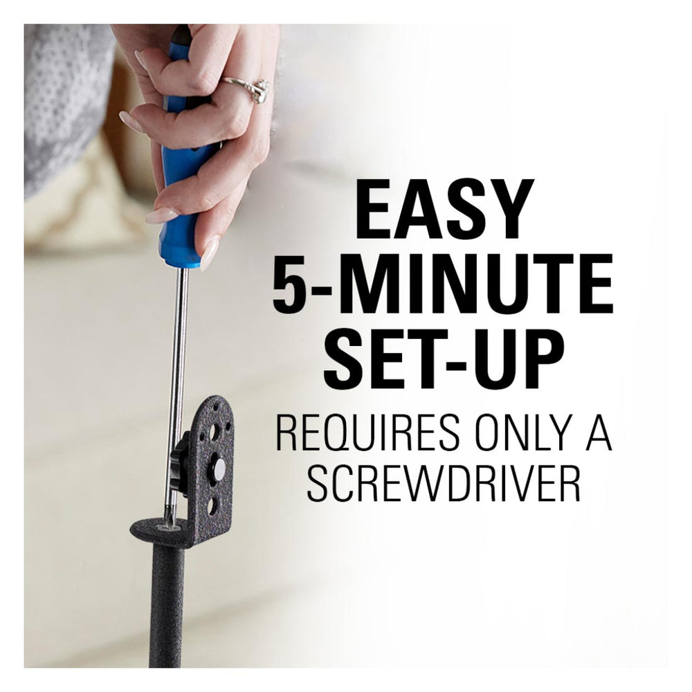 - Installation takes only 5 minutes and requires only a screwdriver.