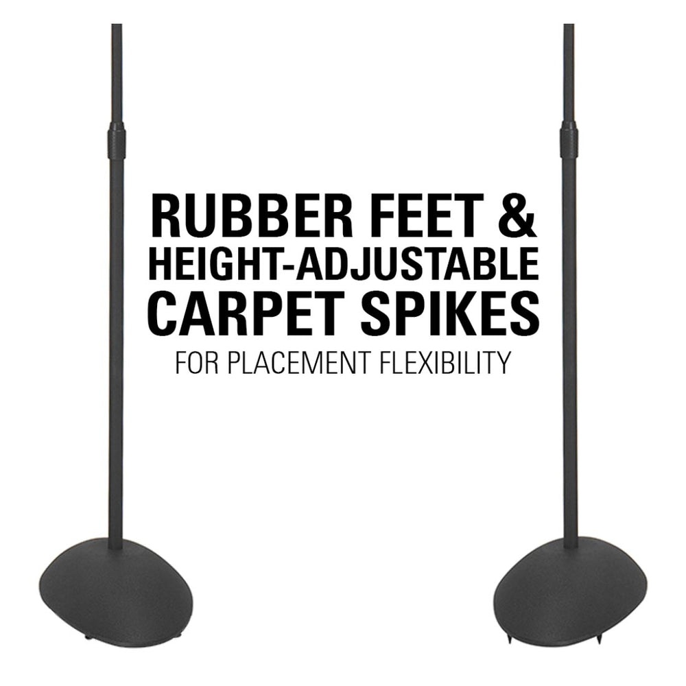 The stands offer 13" of tool-free adjustment, moving from 26" to 39" so speakers can be placed at optimal listening height.
