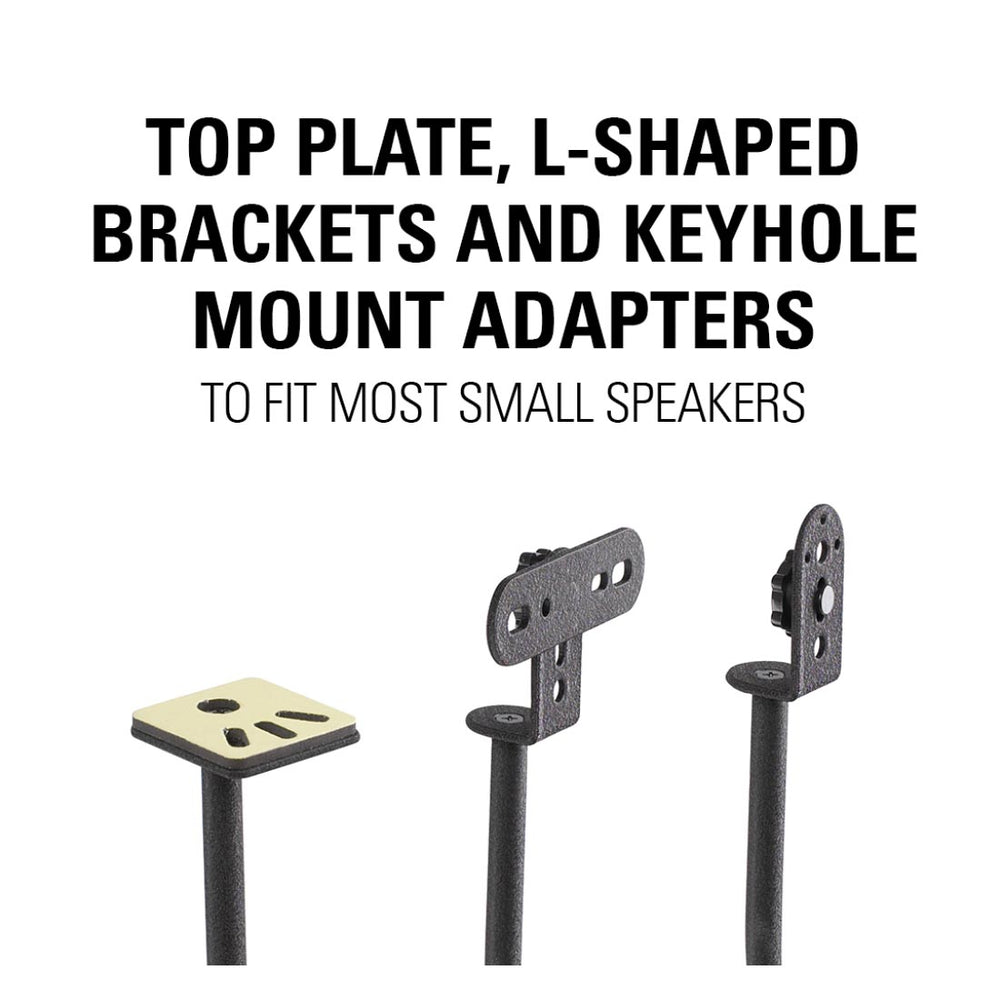 - Included top plate, "L" brackets, and QuickMount™ adapter support speakers with keyholes on the back.