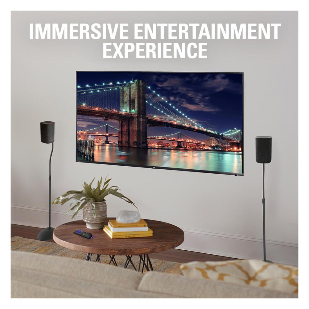These height-adjustable stands provide an immersive entertainment experience when used with Roku TV Wireless Speakers.