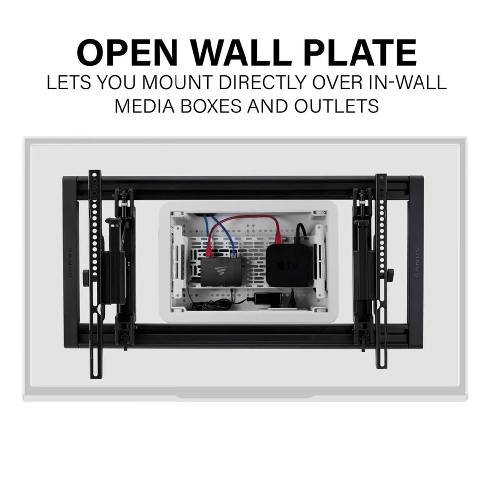One of the common issues with standard tilting mounts is that large TVs often hit the wall, limiting their tilting capability. The Sanus VLT7-B3 solves this problem with its 6.8" extension from the wall. This extended reach allows even the largest TVs to achieve their maximum tilt range. This feature is particularly beneficial for those looking to mount their TV in a tight space or on an uneven wall where traditional mounts might fall short.